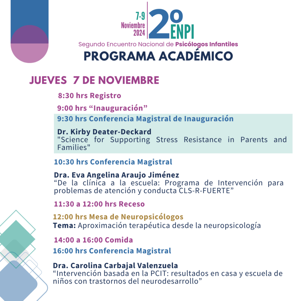 Programa Académico 2024 Conoce el Programa del 2º Encuentro Nacional de Psicólogos Infantiles. Puede haber cambios en el programa sin previo aviso. Descarga el programa completo. Programa 2º ENPIDescarga Compártelo: Comparte en Facebook (Se abre en una ventana nueva) Facebook Haz clic en Pinterest (Se abre en una ventana nueva) Pinterest Me gusta Cargando...